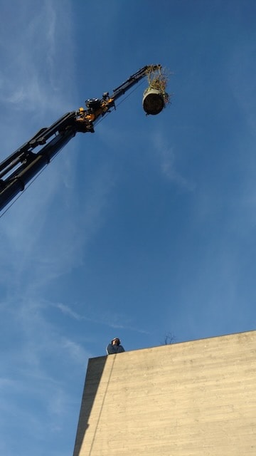 Die präzisen Hebearbeiten, inklusive Anlieferung und Aufsetzen der Grosspflanzen, wurden von Alder Transporte und Kranarbeiten durchgeführt. Eine millimetergenaue Teamarbeit, bei der Sicherheit und Timing zentral sind.