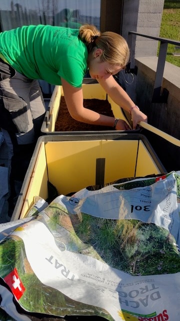 Für das Substrat setzen wir auf Spezialerden von Terresuisse, die exakt auf Terrassen- und Dachbepflanzung abgestimmt sind – leicht, strukturstabil und wasserspeichernd.