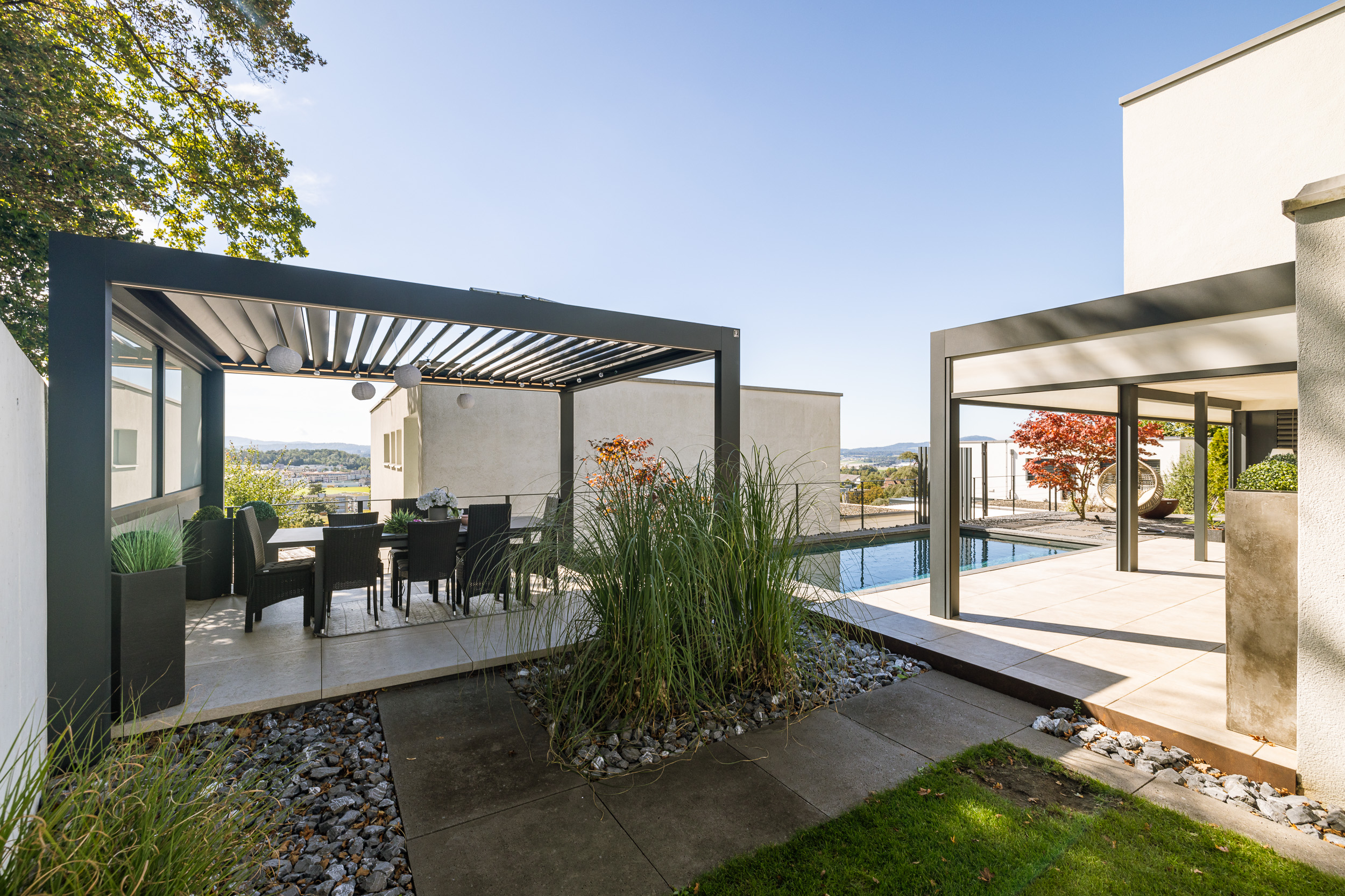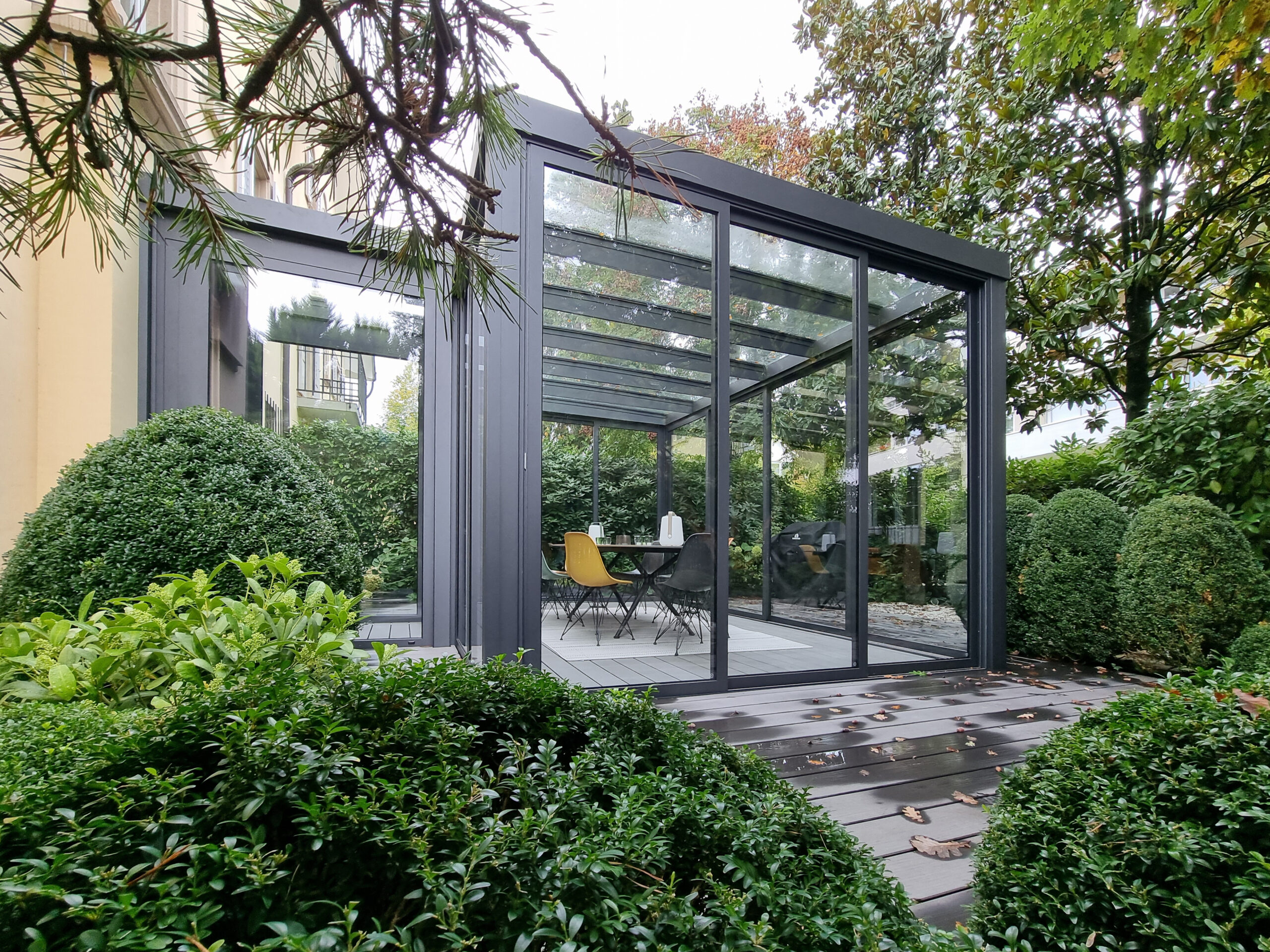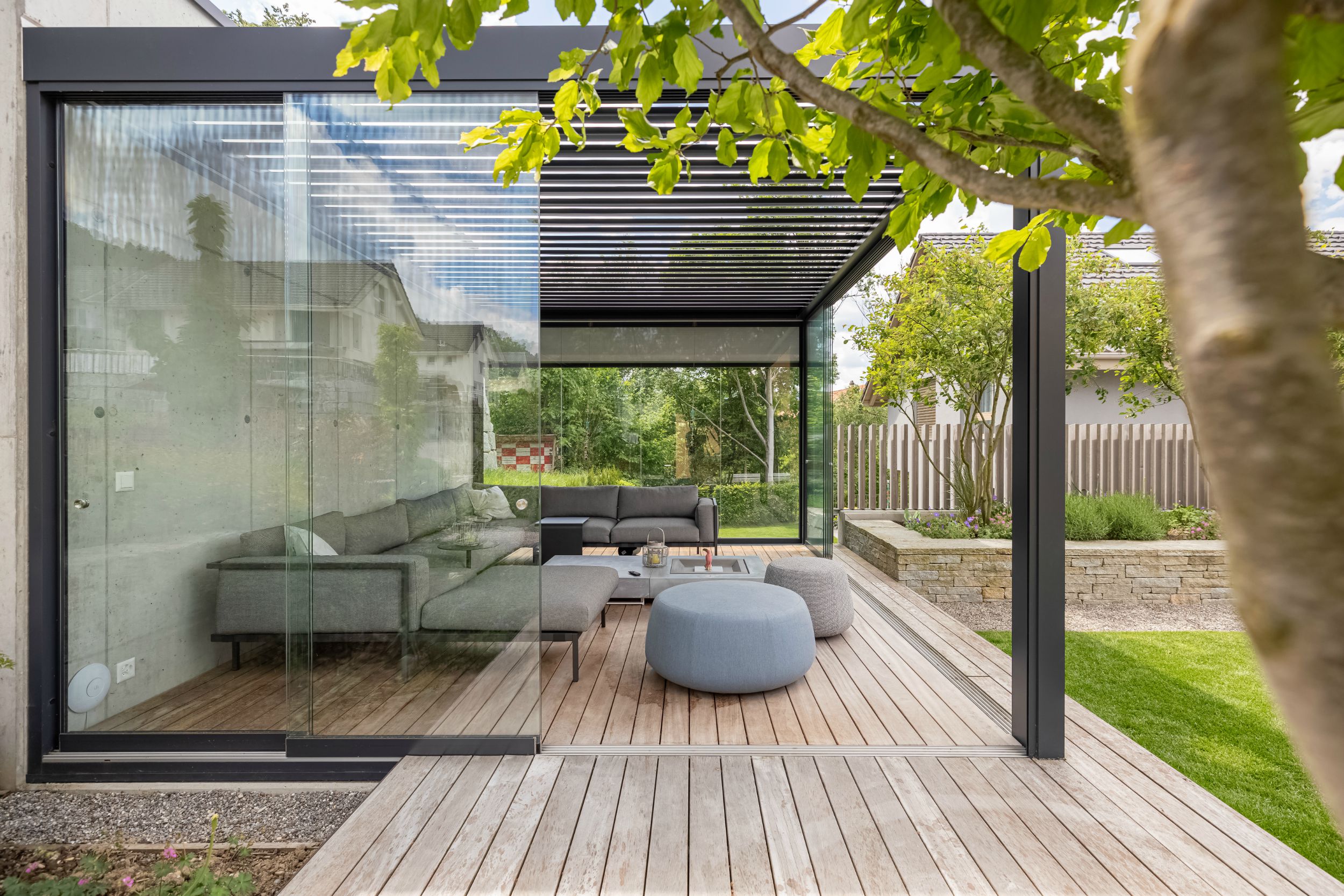 Die vielseitigen S-Design Terrassenüberdachungen von Thermogreen passen sich individuellen Kundenbedürfnissen problemlos an: in Form, Farbe, Schneelasten, Ausbaubarkeit und vielem mehr. Sie überzeugen aber nicht nur durch ein äussert flexibles System, sondern widerspiegeln auch grosse Leidenschaft für schönes Design, hochwertige Qualität und moderne Materialien.
